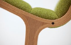 Tendo Mokko makes its furniture using thin layers of wood that are layered together and formed by putting them into a press and adding pressure and heat, and we have developed a new type of compaction technology that requires less heat and shorter time in the press so that the wood can be formed into just the right thickness. This new technique leaves a clean wood grain that looks good and is easy to process.