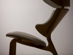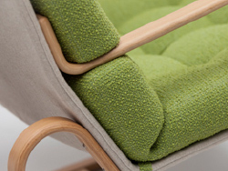 Wood that tries to take an unwavering stand can be knocked over in a stiff wind. Supple, flexible trees, like the willow, remain standing. They have the “graceful strength” to absorb impact, and this is the secret of formed plywood, although it doesn’t start out that way. When plywood is made, all material that might split or break is removed. Artisans carefully consider the characteristics of the original wood and put it through test after test to finally come up with the optimal width and thickness. A good example is our S-5226 rocking chair, which is made from a single piece of plywood except for the armrests. To keep the legs of the chair strong, a piece of wood is fitted into the plywood using a technique called “adding a piece” forming.